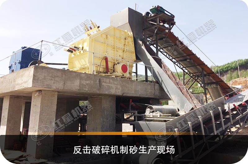 反擊破碎機生產石灰石機制砂現場
